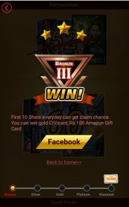 - First 10 Game Share everyday can get claim chance. You can win gold Criccard, Amazon Gift Card.